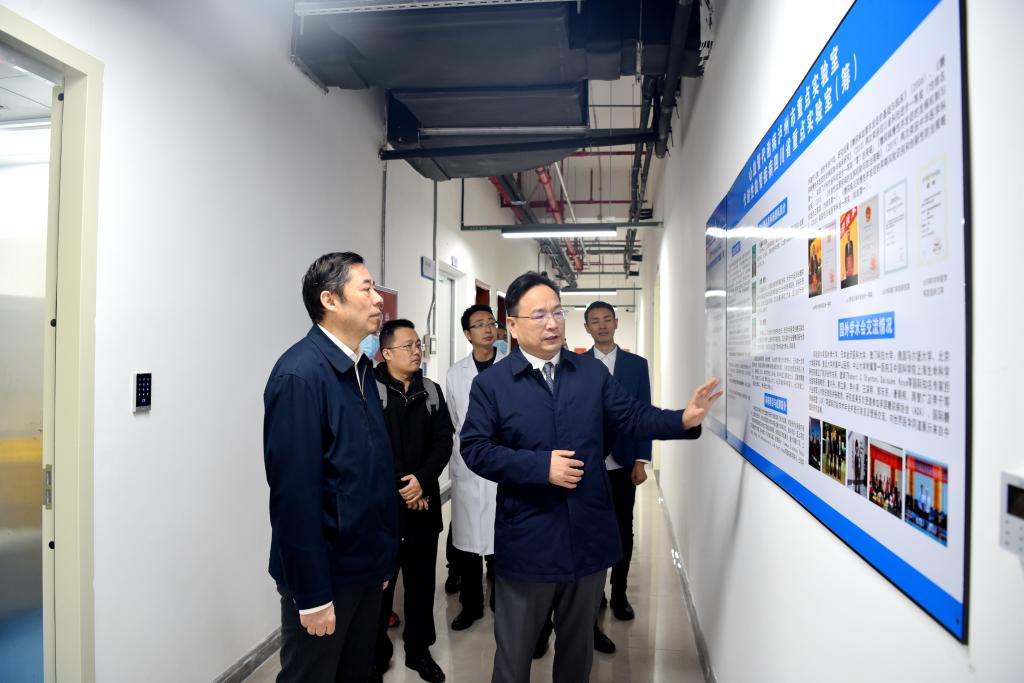 宋世贵一行来到学校科技大楼,走访了医学电生理学教育部重点实验室和PI实验室,了解实验室的硬件设备和人员团队配置情况。宋世贵与一线科研人员亲切交谈,了解实验室的研究方向和科研转化等情况,并鼓励kaiyun官网科研工作再创佳绩。