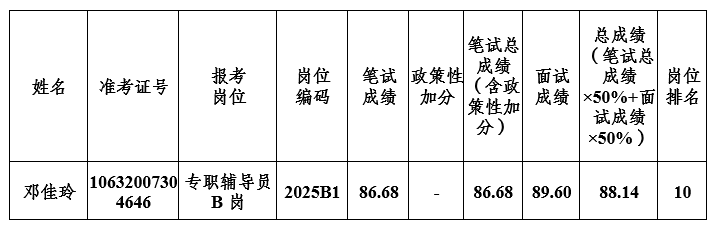 因本次公招报考岗位编码2025B1,排名第五考生自愿放弃,按公告要求,现递补符合条件报考岗位编码2025B1排名第十考生进入体检环节,具体情况如下: