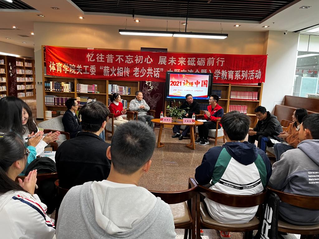 10月26日下午,体育学院关工委“薪火相传 老少共话”主题交流会暨入学教育系列活动在逸夫图书馆城市书房举行。此次活动邀请到了学校原基础部党总支书记、体育专业退休老教师周仲平教授、学院关工委常务副主任佘国林副教授作为座谈嘉宾。学生科科长李斌、学科办副主任闫雪锋、学院关工委秘书蔺益超、辅导员李正才及20余名本科生、研究生新生代表参加活动。
