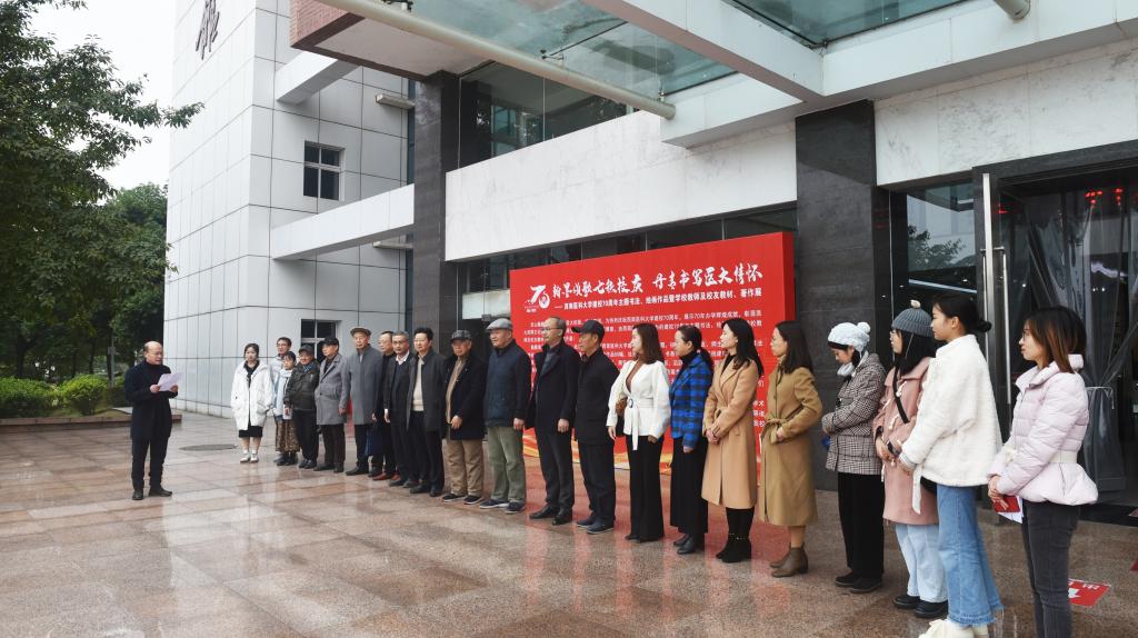 为庆祝学校建校70周年,展示70年办学历程,学校建校70周年主题书法、绘画作品暨学校教师及校友教材著作展于1118日正式开展。党委常委、副校长彭钢,学校原党委书记叶怀祥、尹杰霖,党委宣传部、工会、团委、离退休工作处、图书馆、校友办相关负责人,泸州市书法家协会主席李在兵,以及部分教师、弘文书社学员代表参加开幕仪式。开幕仪式由校庆办常务副主任陶瑞宇主持。