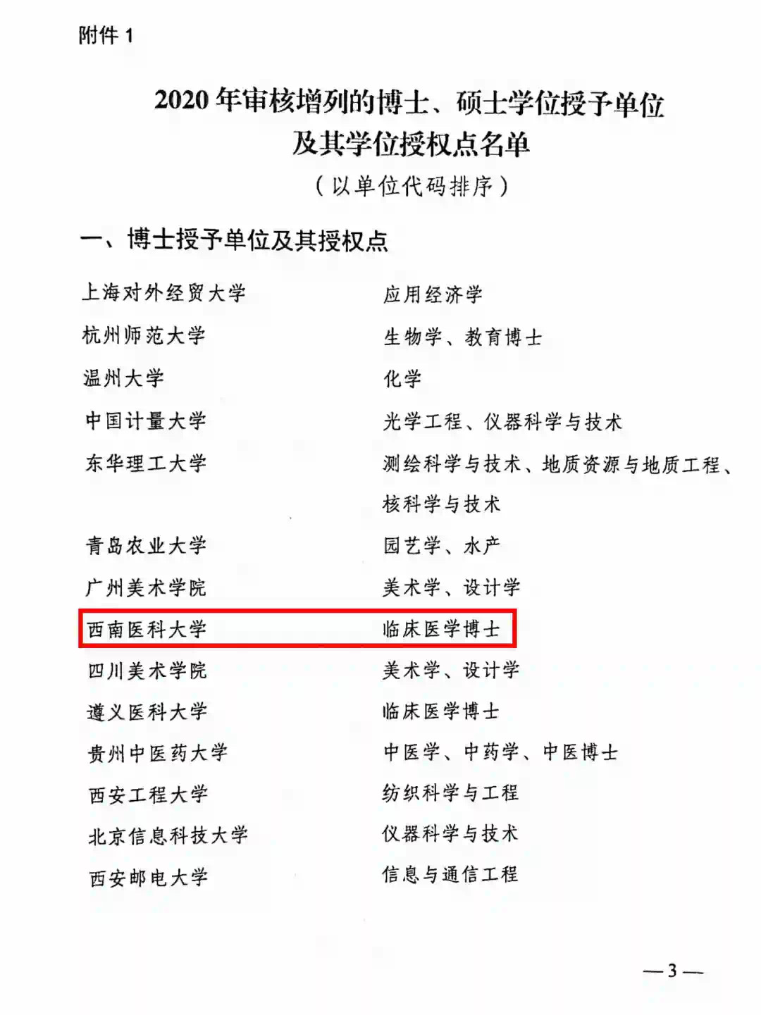 近日,国务院学位委员会发布《国务院学位委员会关于下达2020年审核增列的博士、硕士学位授予单位及其学位授权点名单的通知》(学位〔2021〕13号),kaiyun官方网站入口正式获批成为博士学位授予单位,临床医学获批博士专业学位授权点,自批准之日起,可开展博士研究生培养工作。这标志着学校实现了博士学位授权点“零”的突破,形成了“本、硕、博”完整的学位授权体系,学校综合竞争力和办学水平迈上新台阶。当然这也是临床医学学科建设上最闪耀的一张成绩单。