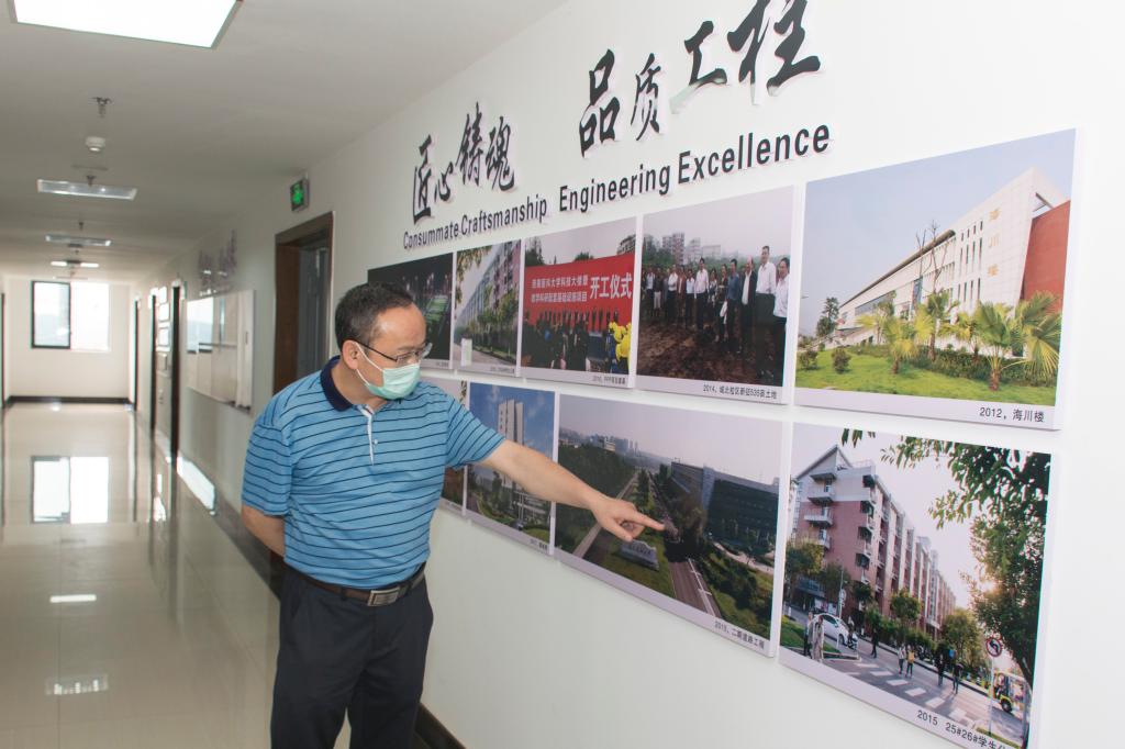 陈家良一行先后观摩了科技大楼、人文大楼、研究生公寓、留学生公寓、食堂等项目施工情况,基建处各楼栋现场代表向中心组人员介绍了项目的有关情况。随后,中心组人员回到德诚楼9楼参观了基建处文化建设成果及党建活动室、阅览室,听取了基建处部门文化墙、发扬“钉钉子精神”建品质工程,演绎医大建筑风骨文化品牌建设的情况介绍等。