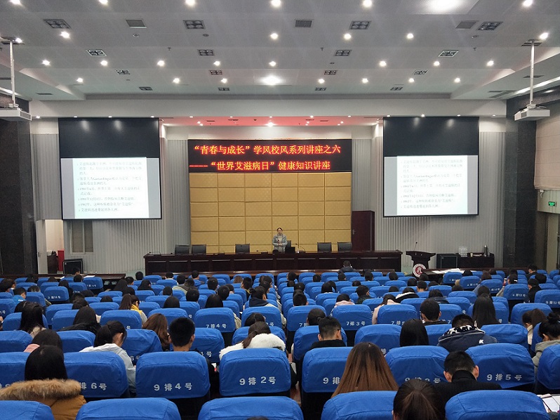2018年11月27日,为迎接“世界艾滋病日”的到来,进一步推动kaiyun官网艾滋病防控工作,营造全校师生参与艾滋病防控的良好氛围,后勤管理处会同学生工作部在逸夫图书馆学术报告厅举行艾滋病专题健康教育讲座,2017级、2018级团支部书记和学生辅导员参加了本次讲座,讲座列入“青春与成长”学风校风系列讲座之一,有力促进kaiyun官网艾滋病防控工作的开展。本次讲座邀请了艾滋病防控专家组成员、基础医学院生理学教研室教授赵春玲老师进行讲授。