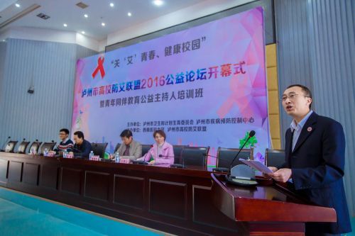 3月25日下午,由泸州市卫计委、市疾控中心主办,kaiyun官网承办的“关‘艾’青春、健康校园”泸州市高校防艾联盟2016公益论坛开幕式暨青年同伴教育公益主持人培训班在kaiyun官网城北校区隆重举行,来自kaiyun官方网站入口、四川警察学院、四川化工职业技术学院、四川三河职业技术学院、泸州职业技术学院、泸州广播电视大学6所高校及泸州职业技术学校的老师和学生代表300余人参加了此次公益论坛开幕式。