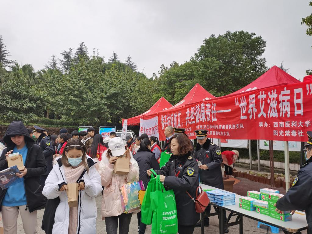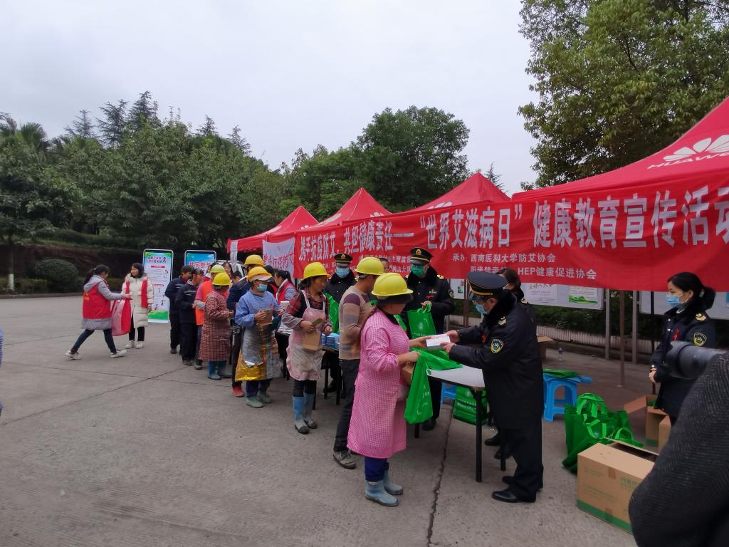12月1日是第33个“世界艾滋病日”,为深入贯彻省市关于全面加强艾滋病防治的要求,营造良好健康的校园环境,学校基建后勤处、党委宣传部、学生工作部、校团委等多部门协同配合,与泸州市卫生和计划生育监督执法支队、泸州市龙马潭区卫生和计划生育执法大队等单位校地联动,依托学校防艾协会、阳光禁毒社、HEP健康促进协会等学生社团,在学校城北校区开展世界艾滋病日健康教育宣传活动,同学们采用线上答题、线下发放艾滋病健康教育宣传手册、避孕套、手工红丝带条幅等多种形式开展了丰富多彩的健康教育宣传活动,同时参加活动的还有来自学校基础设施EPC+PPP项目建设工地的工人及食堂服务人员。