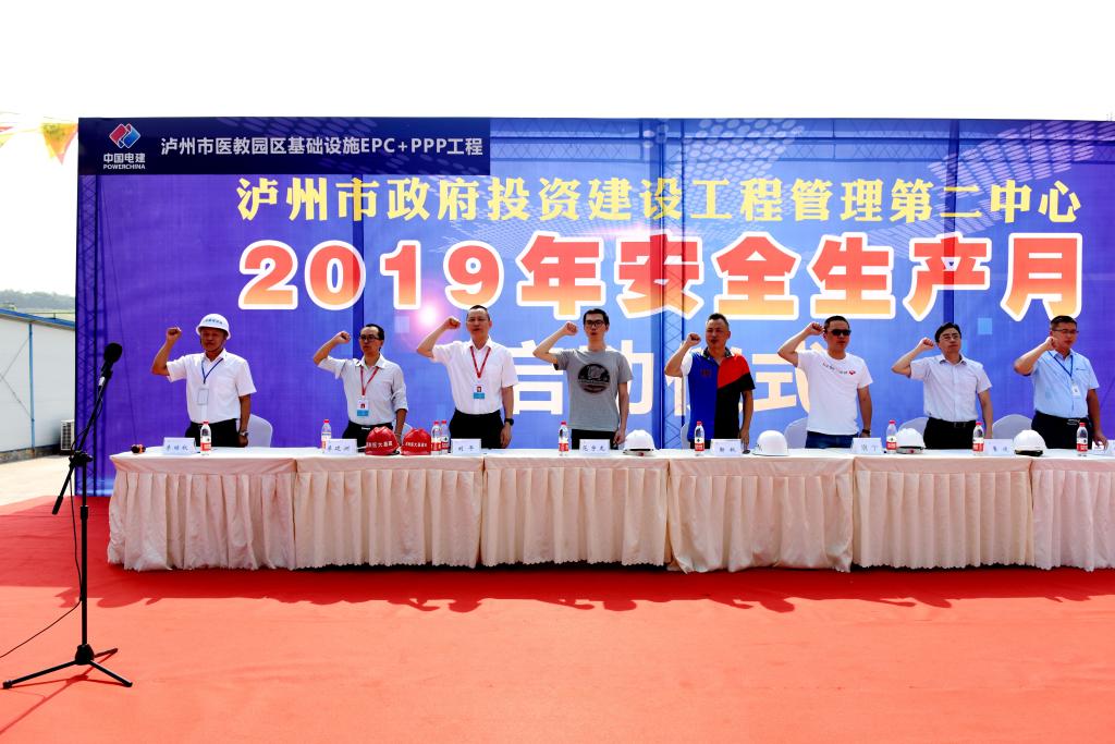 6月4日上午,泸州市医教园区基础设施EPC+PPP工程项目2019年 “安全生产月”活动启动仪式在kaiyun官网城北校区综合体育馆子项场地内举行。市住建局、市建管二中心、学校基建处、项目公司、中电建集团及各建设区块劳务班组工人参加了启动仪式。