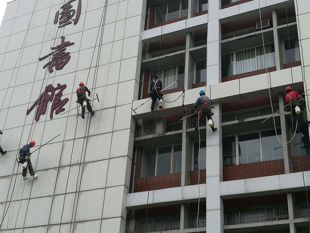 (清洗逸夫图书馆外墙)