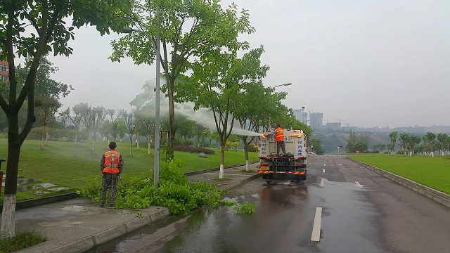 4、保持两校区公共区域、绿化带的环境卫生整洁。一是重点对白色垃圾、牛皮癣、枯枝落叶、杂草等进行清理清运,动用洒水车对两校区主要干道、黑臭水体路段冲洗10余次;二是对忠山校区大校门右侧水池、大礼堂旁水池、学术报告厅后方水池以及城北逸夫图书馆底楼水池等水体景观进行了清理并换满清水;三是清理整治两校区卫生死角,重点对忠山家属区及楼道的废旧家具进行清运20余次,并对食堂和公寓周边进行了定期循环保洁清理,对护理学院内的4个卫生死角点进行了全面清理;四是前后多次对忠山家属区住户私自种菜、养鸡的现象进行了劝导和整治,在创文迎检前,杜绝了家属区占用绿地种菜和饲养家禽的现象。