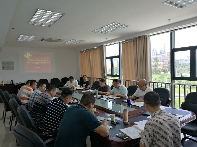 6月26日,教辅后勤党总支在德诚楼412会议室召开理论中心组2018年第二集季度第二次集中学习(扩大)会,党总支委员、支部书记、办公室主任参加会议。会议由党总支书记陈家良主持。
