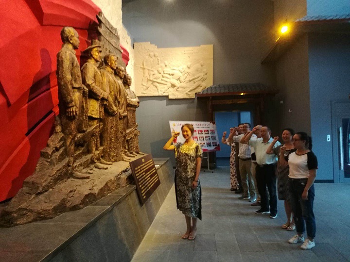 在红色主题教育阶段,全体党员在纪念馆参观学习,感受革命精神,同时,举行了“庆七一重温入党誓词”宣誓活动,全体党员面对党旗,举起右拳庄严宣誓,每一位党员同志都接受了一次深刻的党性教育和灵魂洗礼。