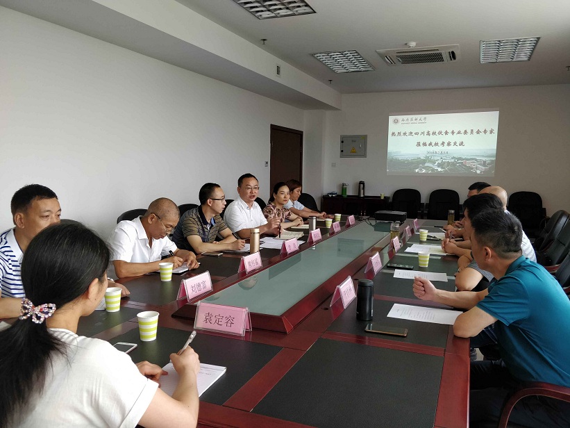 7月5日上午,四川省高校后勤协会伙食专业委员会一行5人来校交流调研,双方就学校食堂基本情况、食堂成本、费用构成及核算方式、基本大伙和风味小吃售价情况及分量、食堂人员管理、食堂总体运营情况等方面问题进行交流。
