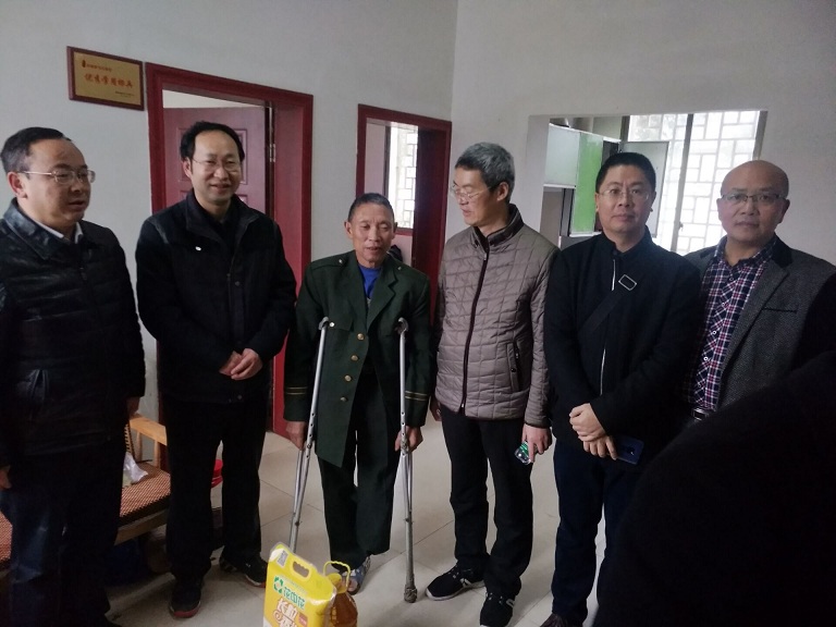 随后,聂敏海一行依次走访慰问了朱连成、黄运其、万发银、陈善业、刘官贵等5户教辅后勤党总支结对帮扶的贫困户,深入了解贫困户的生产生活、住房起居、收入来源、身体状况及“脱贫不脱帮”政策落实情况等,仔细询问每一户贫困户存在的困难及当前急需解决的问题,为他们送去了米、油等慰问品,鼓励他们发挥主观能动性创造性,早日实现致富同奔小康。