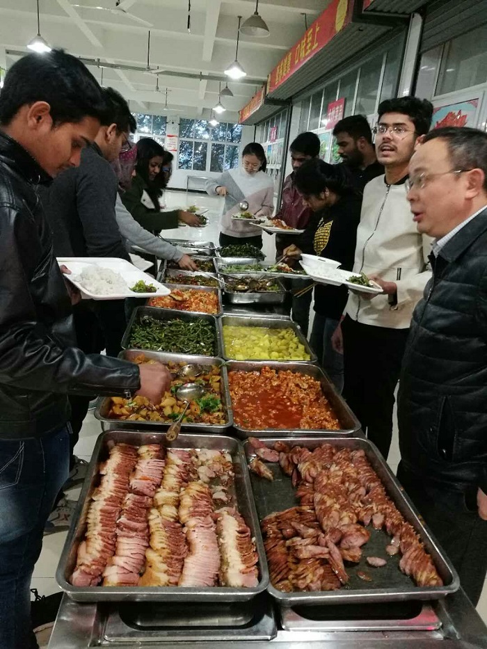 2月3日晚,学工部、后勤处、国际教育学院在忠山校区粒香苑和城北校区桂香苑,为假期留校中外学生举行“吃团年饭•话关爱情”暖心团年饭活动。丰盛的团年饭,淳浓的关爱情,现场气氛热烈,让留校同学倍感温暖,得到了学校主要领导的充分肯定。