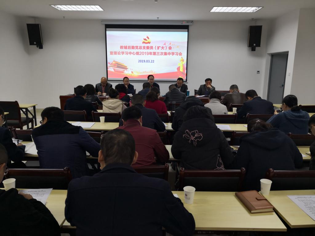 3月22日上午,教辅后勤党总支在城北校区二会议室召开总支委员(扩大)会暨理论学习中心组2019年度第三次集中学习会,学校副校长聂敏海应邀出席,党总支委员、处科级干部、支部书记等30余人参加。会议由党总支书记陈家良主持。