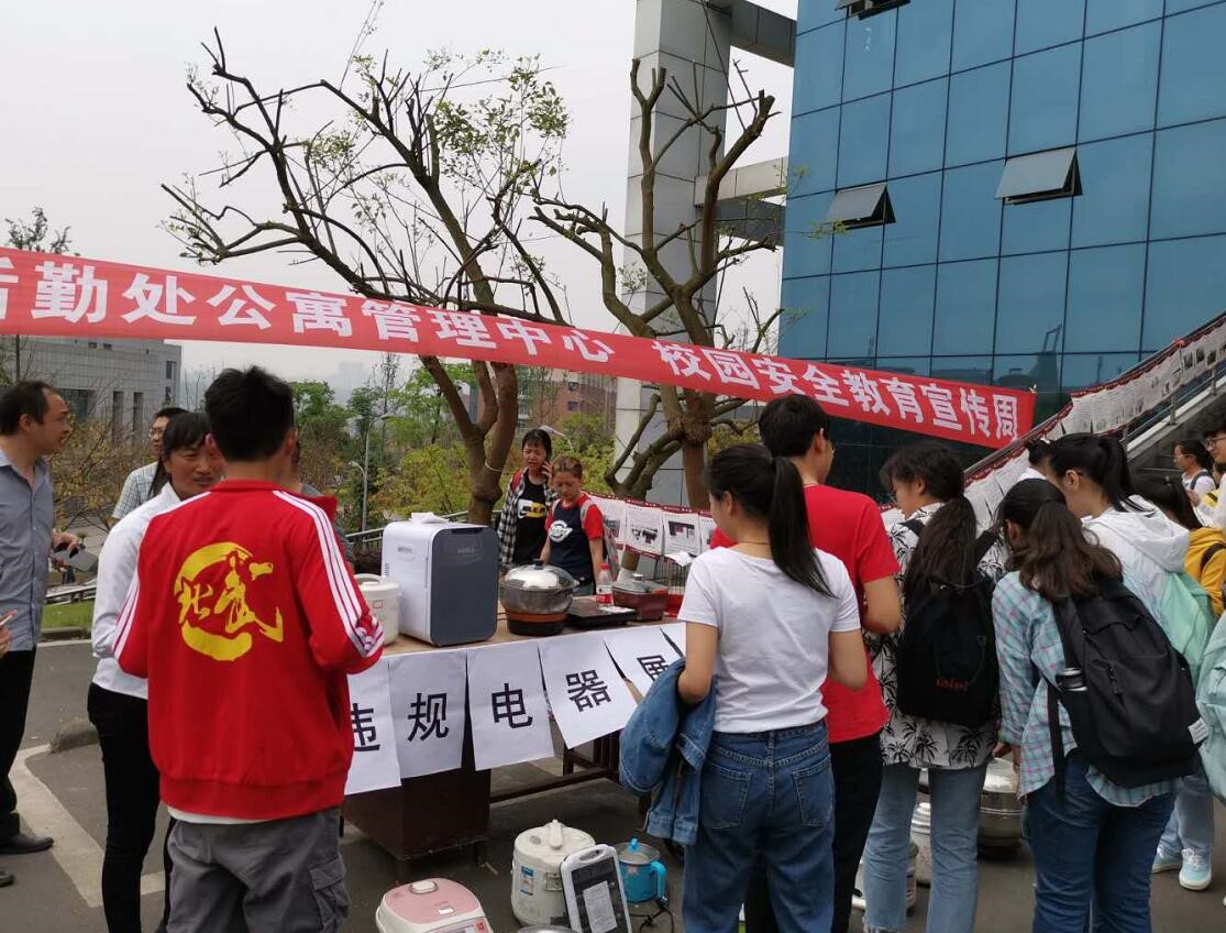 为了让更多的学生了解安全用电常识及使用违章电器的危害,4月9日-10日,公寓管理中心在两校区开展了“学生公寓违禁品及安全事故案例图片展”活动。展览活动将收缴暂扣的违章电器(电煮锅、电饭煲、电磁炉、热得快等)、部分劣质烧毁产品及寝室违禁品进行实物展示,并将近年来国内高校发生的安全事故案例进行图片展示。