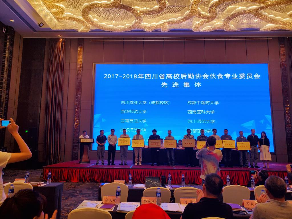 5月27-28日,四川省高校后勤协会伙食专业委员会2018年年会在内江市万达嘉华酒店召开,来自全省80余所高校300余代表参会,省教育厅后产中心主任王方文、省高校后勤协会秘书长高庆莅临指导。kaiyun官网教辅后勤党总支书记、后勤管理处副处长陈家良一行3人参加了会议。
