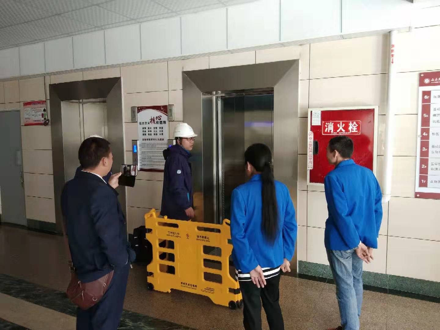 10月29日,后勤管理处在明理楼开展了电梯应急演练,教室管理员、电梯安全管理员、蒂森电梯公司技术人员参加了本次演练。为增强广大师生员工安全使用电梯意识,演练围绕发生电梯困人事故时如何应急处理展开:对于被困人员,应稳定情绪,立即按下救援报警按钮或者拨打救援电话,切勿随意扒门;作为教室管理员和电梯管理员,发现人员被困后,应做好安抚工作并及时拨打救援电话,保证被困人员安全。