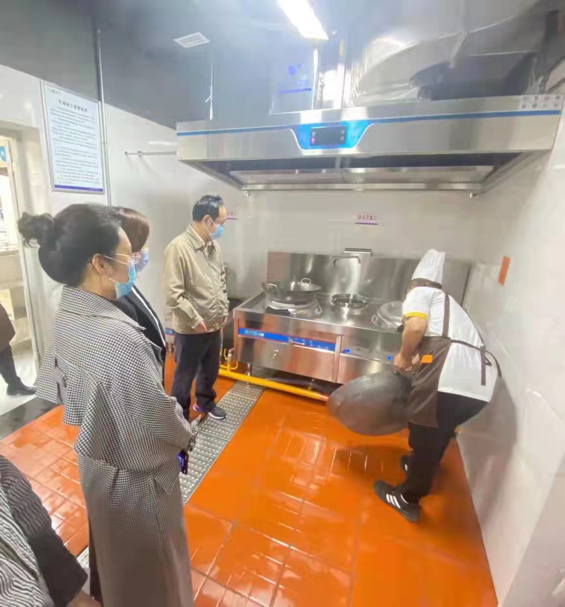 检查组针对新食堂疫情防控措施、经营资质、管理制度及标识标牌、消防安全、设施设备布置及餐桌椅摆放、菜品价格、员工健康检查情况及住宿条件、食品原材料的采购和库房管理、后厨操作间、员工更衣间、员工个人卫生及着装、教职工窗口及接待餐等各方面情况进行了全面检查。
