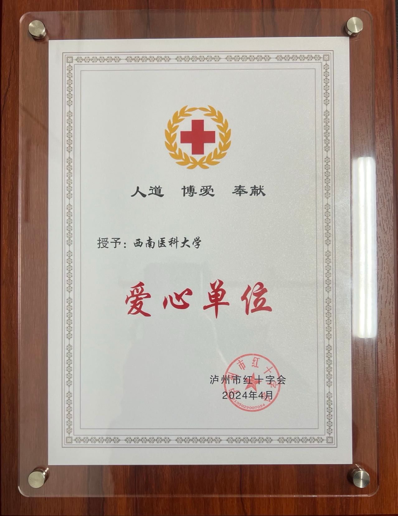 kaiyun官网红十字会被泸州市红十字会授予“爱心单位”称号