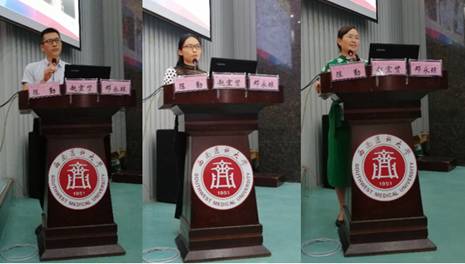 第二个部分,基础医学院赵宏贤教授、临床医学院邓永琼博士、教师发展中心陈勤主任采用合作教学的方式,进行了“‘专业+’育人模式初探”专题的培训。首先,赵教授从一个游戏开始,引发学员们对“专业+”的思考,并做了相关讲解;接着,赵教授与邓博士结合案例分享了教师“教学情结”的培养,包括奉献情结、教改情结、人文情结,尤其是在课程中切入人文教育的方法。然后,陈勤主任向各位学员提出三个问题,要求大家对课程思政进行主动的思考。