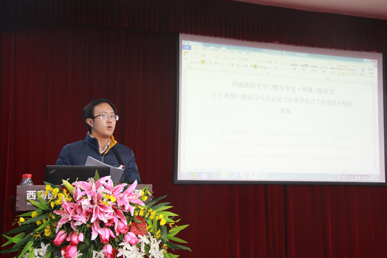 会上,分管教学副院长黄跃首先强调了本次专业认证的重要性,随后就“口腔医学专业认证工作方案”进行了详尽的解读,宣布了口腔医学专业认证工作领导组及布置工作进度安排。