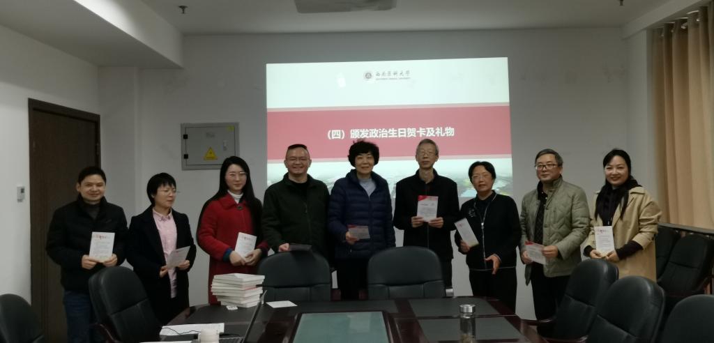 赵琼主任作为特邀嘉宾向过政治生日的党员同志宣读生日寄语,她提到,希望大家牢记自己政治旅途的起点,牢记自己是共产党员的光荣身份,牢记自己对党立下的铮铮誓言,在以后的工作中要始终牢记共产党员的初心使命,始终以合格党员的标准规范自我,始终保持共产党员的先进性,加强学习,勇于担当作为做出更卓越的成绩。最后,赵琼给每一位党员颁发了政治生日贺卡及礼物。