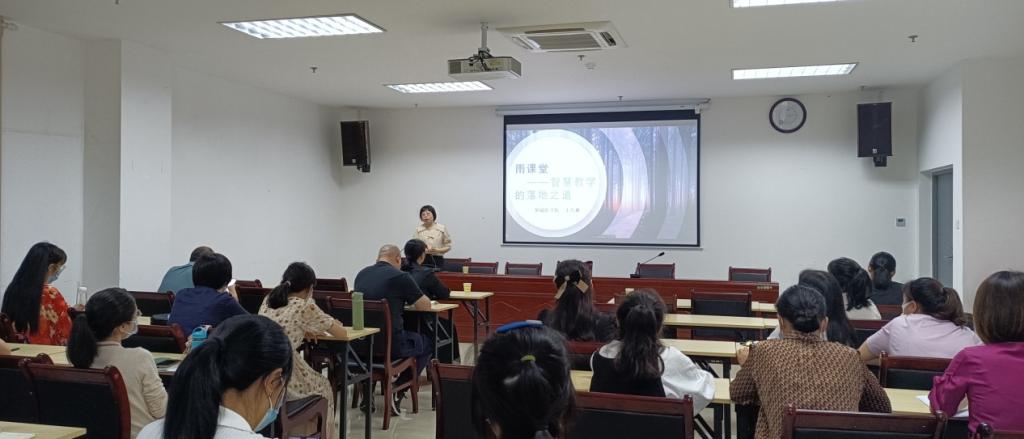 开班仪式后,基础医学院王巧稚为学员做了《雨课堂——智慧教学的落地之道》主题分享。王巧稚首先从教学面临的新模式、新理念和新时代说明开展混合式教学的重要性,然后重点介绍了雨课堂的几种课堂应用方式,帮助教师在课前、课上和课后开展混合式教学,并对雨课堂、超星、希沃、钉钉等进行了比较,指出针对不同的教学情形,必将有多元化的选择,鼓励学员打开思路、积极实践探索。