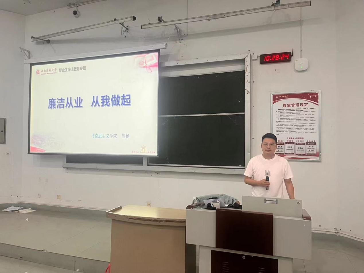 为夯实学校“清风校园”廉洁文化活动品牌,铸牢毕业生崇廉尚洁的思想根基,走好迈入社会第一步,帮助学生树立正确的廉洁观。在毕业生离校之际,马克思学院开设毕业生“廉洁教育”专题课程,本次课程由马克思主义学院教学一部教师主讲,学校2023届全体毕业生参加。