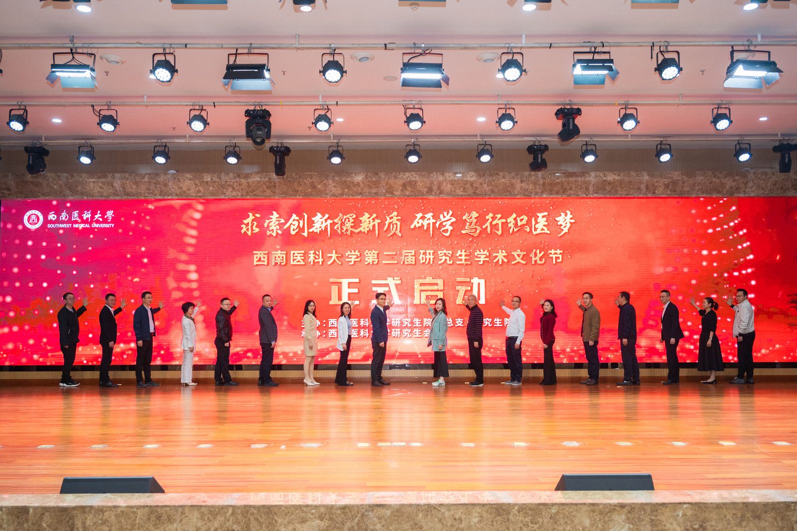 与会校领导、职能部门主要负责人、各二级院所分管领导共同启动kaiyun官方网站入口第二届研究生学术文化节并合影留念。