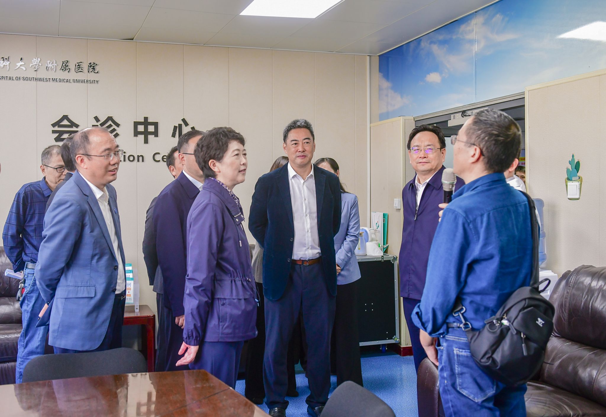 10月22日,市委书记刘筱柳带队到学校及附属医院忠山院区调研指导工作。她强调,要深入学习贯彻习近平总书记关于教育强国和健康中国建设的重要论述,认真落实党中央、国务院和省委、省政府部署,深入推进医教研协同发展,为泸州建设区域医药健康中心提供强有力的支撑。市委常委、组织部部长米亮,副市长罗素平及泸州市相关部门负责人参加调研。学校党委书记廖斌,党委副书记、校长张春祥,学校党政办公室、科技处、档案馆、附属医院相关负责人陪同调研。