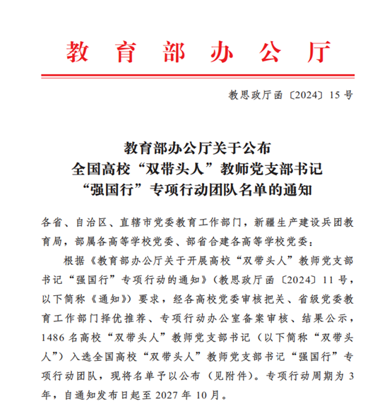 近日,教育部办公厅印发《关于公布全国高校“双带头人”教师党支部书记“强国行”专项行动团队名单的通知》,kaiyun官网临床医学院·附属医院麻醉科党支部入选,这是kaiyun官网在此党建项目上的一项重要突破。