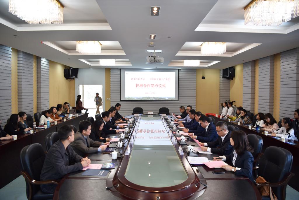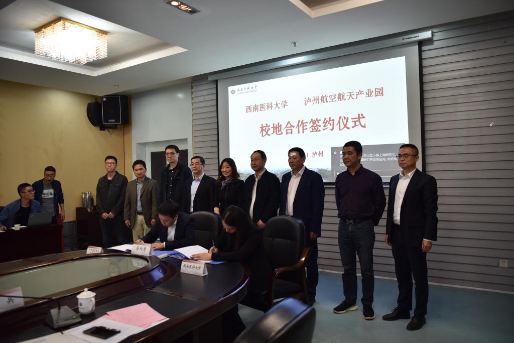 医学信息与工程学院院长罗亚梅与泸州航空航天产业园区管委会主任刘宇分别代表学校和园区签署了校地合作协议,医学信息与工程学院党总支书记杨继宏与李宵为“医工融合 创新基地”揭牌。签约仪式上,刘宇介绍了泸州航空航天产业园区基本情况和合作背景;罗亚梅介绍了医学信息与工程学院基本情况及医工发展前景。