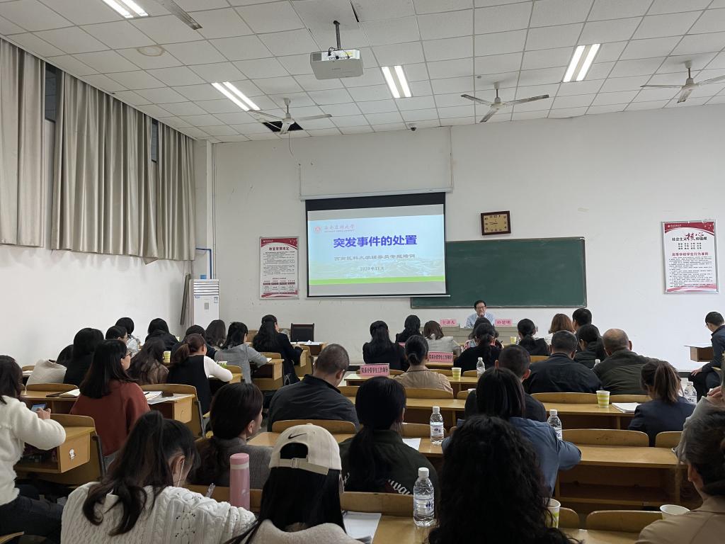 在培训讲解过程中,孙建明结合近年来的一些典型案例,详细阐述了突发事件的基本特征、处置突发事件的基本原则、重点环节和舆情监控和处置流程等。与会人员高度评价孙建明的讲座,纷纷表示收获很大。大家认为,此次培训加强了突发事件处置的基本原则、具体流程和对策方法等知识学习,对下一步开展行之有效的维护校园安全稳定、确保校园意识形态领域安全的各种活动,具有重要的现实指导意义。