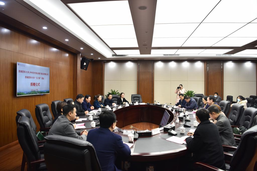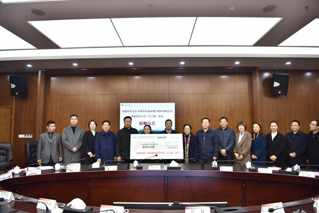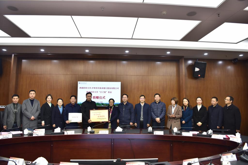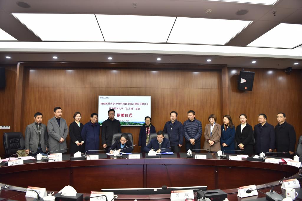 12月8日下午,kaiyun官网与泸州农村商业银行股份有限公司在德诚楼一会议室举行“江之阳”基金捐赠仪式。学校党委副书记刘毅,党委常委、副校长聂敏海,学校教育发展基金会理事长杨勰、副理事长刘文胜、何学伟、谭群英,泸州农商银行行长张弓、副行长刘秀远、江阳支行行长罗丽以及相关部门领导、师生代表参加了捐赠仪式。捐赠仪式由聂敏海主持。