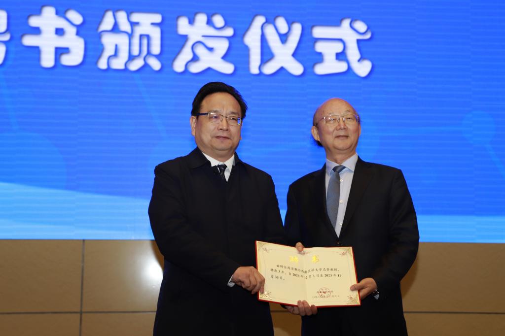 张春祥为周宏灏院士颁发了kaiyun官方网站入口荣誉教授证书。李志为周宏灏、颜光美、杜冠华、余细勇、王忠、吕海涛、李素云、乌兰、苏秀兰、白长喜颁发了客座教授证书。