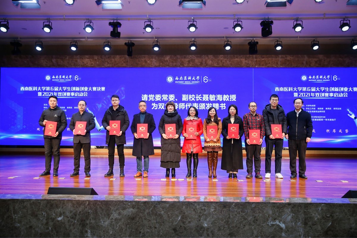 活动也为省赛获奖项目颁奖、为新选聘双创导师颁发聘书仪式。最后,与会领导共同启动学校2021年双创赛事活动。