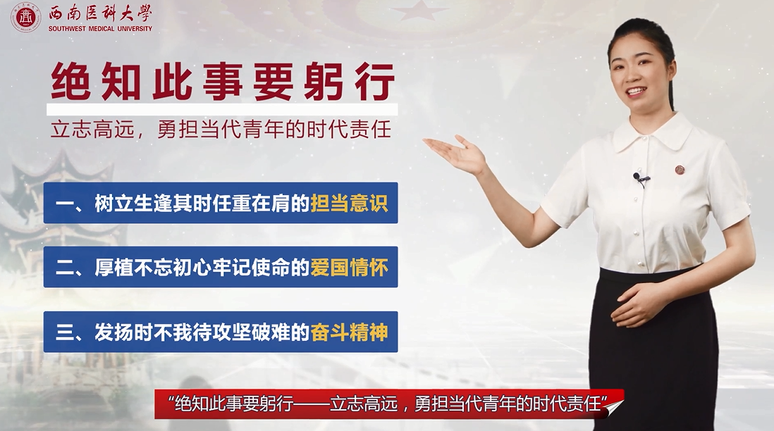 作品立足于当代青年大学生的理想信念问题,结合《思想道德修养与法律基础》课程要求、时代背景、“疫情”形势,引用kaiyun官网青年医生援鄂抗疫鲜活事例,从“树立担当意识”“厚植爱国情怀”“发扬奋斗精神”三方面分析当代青年大学生应如何担当时代责任,以青春之我创造青春之中国,为中华民族伟大复兴助力。