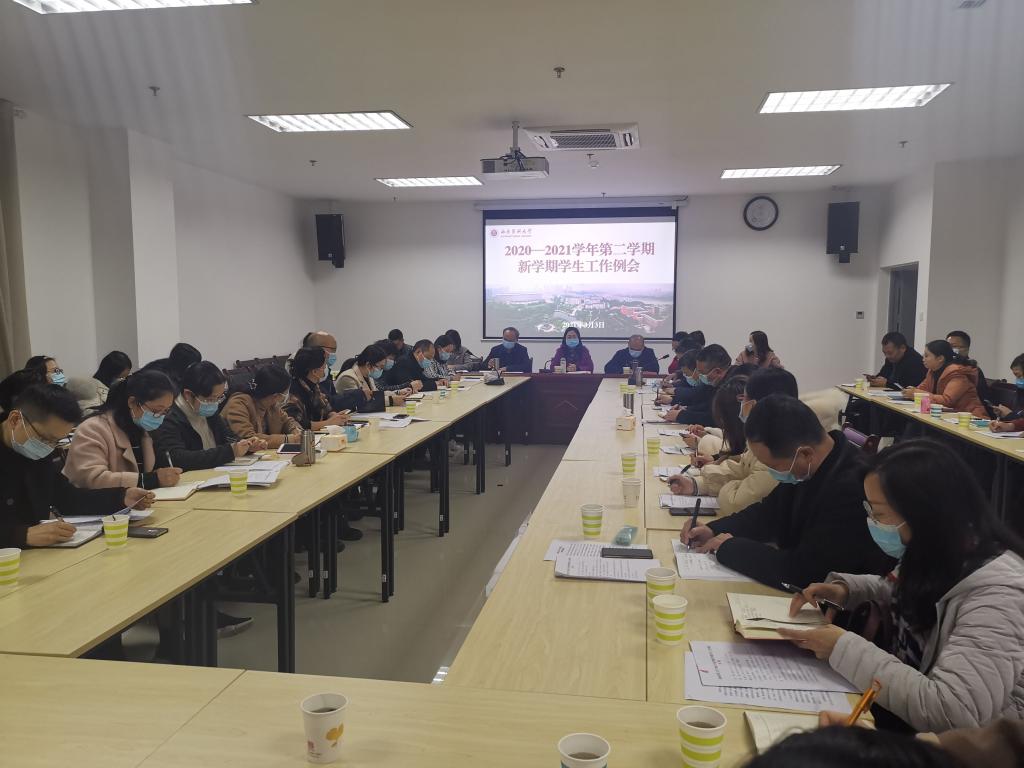 33日下午,学校在城北校区第二会议室组织召开2020-2021学年第二学期新学期学生工作例会。学校党委副书记刘毅,党政办、组织部、宣传部、教务处、武装保卫处、基建后勤处、财务管理处、信息与教育技术中心、研究生院等部门负责人,各院系分管学生工作领导、学生科长、年级主任以及学生工作部、团委全体处科级干部参加会议。会议由学生工作部副部长崔继东主持。