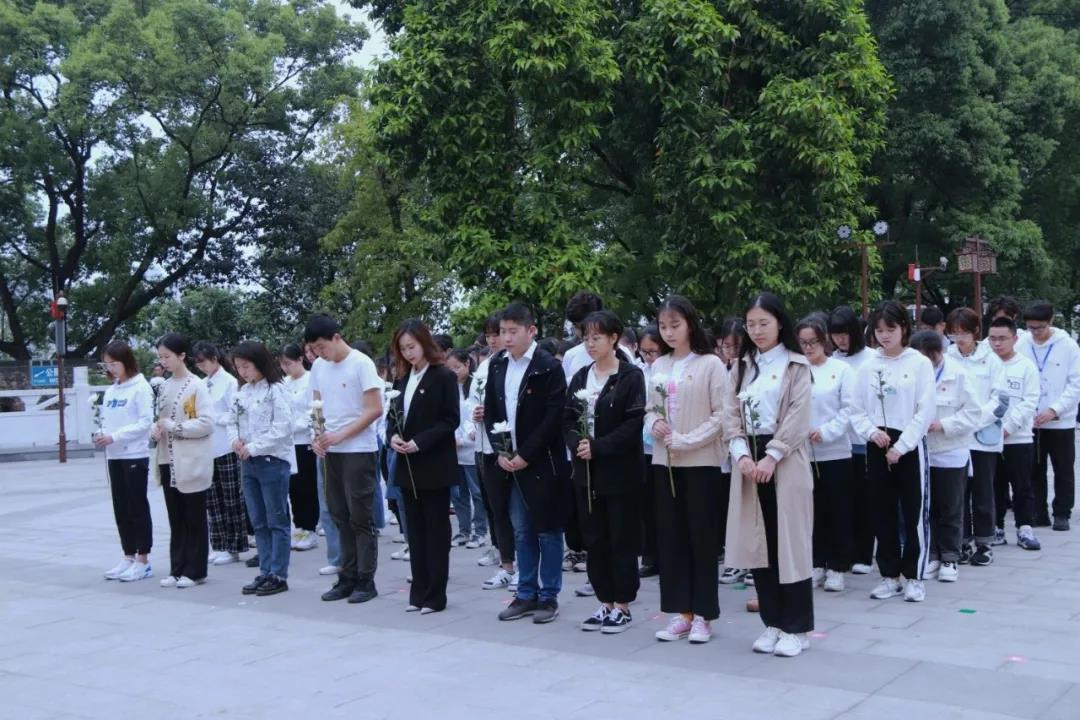 全体师生齐声高唱国歌,熟悉的旋律唱出的是不变的情怀与对初心的歌颂;众人深切追忆泸州烈士李青林的先进事迹,坚定的是不忘历史、砥砺前行的信念与意志。伴着庄重的献花乐响起,石惠和“青马工程“卓越班学员代表向烈士纪念碑敬献花圈;全体师生依次将自己手中的白花敬献在墓碑前,一朵朵白花,寄托的是每个人的怀念与哀思。