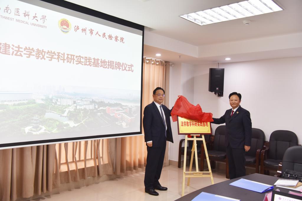 仪式上,主持行政全面工作副校长张春祥和泸州市人民检察院党组书记、检察长刘孝勇签订了共建法学教学科研实践基地合作协议,并共同为基地揭牌。刘孝勇向法学院教师羊海燕等颁发了市人民检察院专家咨询委员会委员聘书,张春祥向干警等颁发了法学院兼职教师聘书。