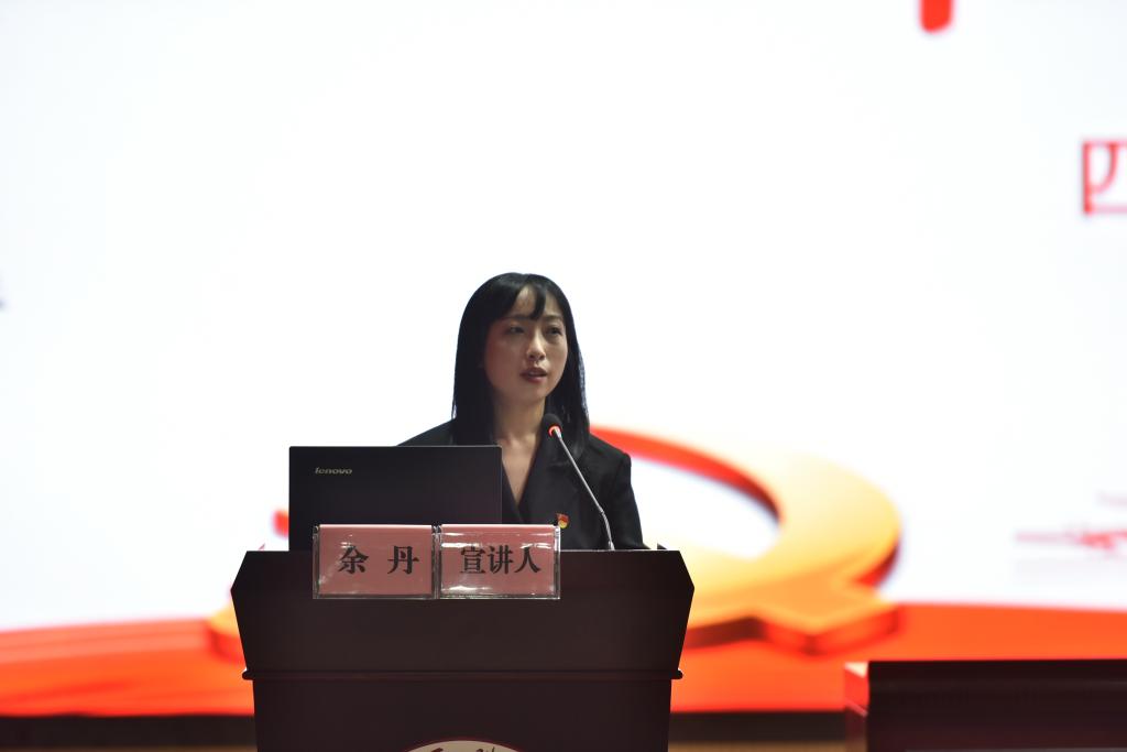 余丹从“筚路蓝缕的社会主义革命与建设”引入,讲述中国共产党改天换地的兴国大业。伴随着感人的音乐,用一个个来之不易的伟大成就背后的感人故事,生动展现了社会主义革命和建设时期,中国共产党团结带领全党全国各族人民进行的伟大创造,并呼吁广大师生以青春之我,创青春之国家。