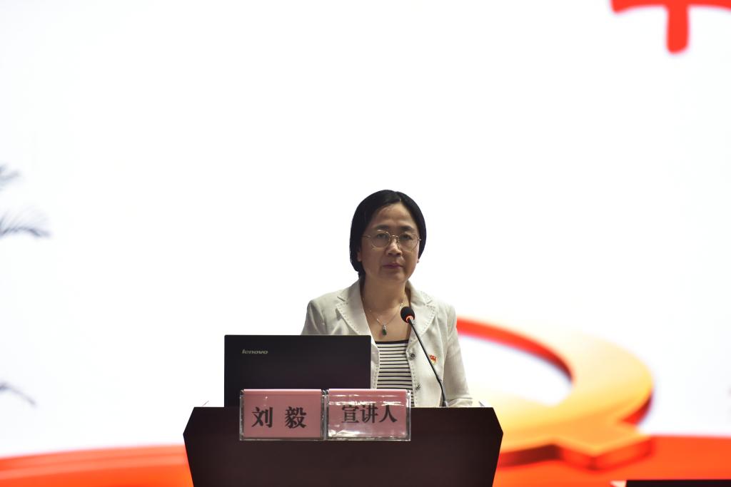 刘毅以“中国特色社会主义建设从改革开放新时期到新时代”为主线,讲述中国共产党翻天覆地的富国大业。运用一组组详实的数据和生动的案例,刘毅向师生重点展示了中国共产党带领中国实现从封闭型经济弱国到开放型全球经济大国、从贫穷到温饱到共同富裕的跨越式转变、从起步到攀升到超越的提档加速发展、从世界舞台边缘到世界舞台中央等主要成就,深刻阐述了中国共产党勇于理论创新的思想品格、敢于刀刃向内的自我革新精神、善于谋划推进的执政能力、坚如磐石的初心使命。她寄语广大师生要增强忧患意识,坚定理想信念,练就过硬本领,勇担时代责任,让青春在创新创造中闪光,朝着我们党确立的伟大目标奋勇前进。