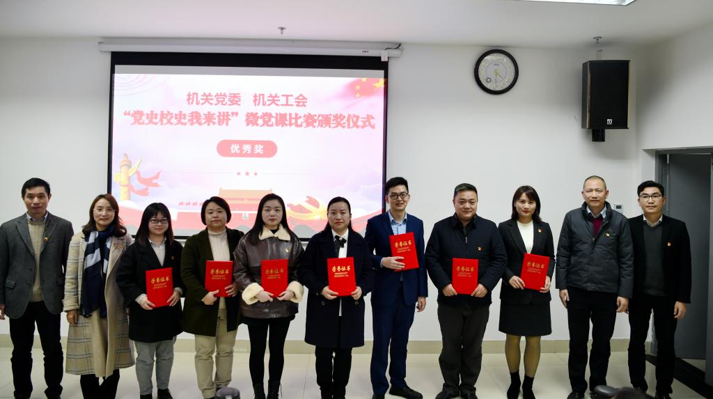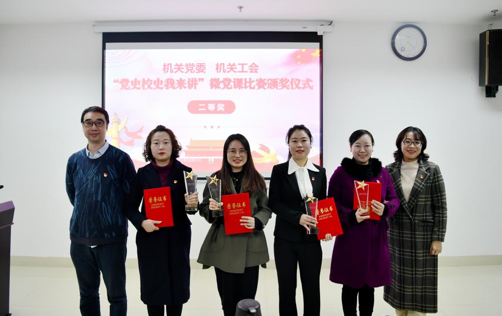 11月19日下午,机关党委、机关工会举办庆祝中国共产党成立100周年,学校建校70周年“党史校史我来讲”微党课比赛。机关党委委员、嘉宾评委、各党支部书记、工会小组长、党员代表等观看了比赛。