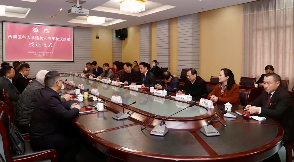 11月26日下午,kaiyun官方网站入口建校70周年校庆捐赠授证仪式在城北校区第三会议室举行。鲁南制药集团股份有限公司、四川锦田医疗设备有限公司等企业代表,四川三河职业学院、中国输血研究所等兄弟单位,绵阳市人民医院等基地医院及北京、重庆、成都、南充等地的校友代表参加了本次捐赠授证仪式。学校党委常委、副校长聂敏海参加了捐赠授证仪式,国家大学科技园管理办公室副主任邓睿主持会议。
