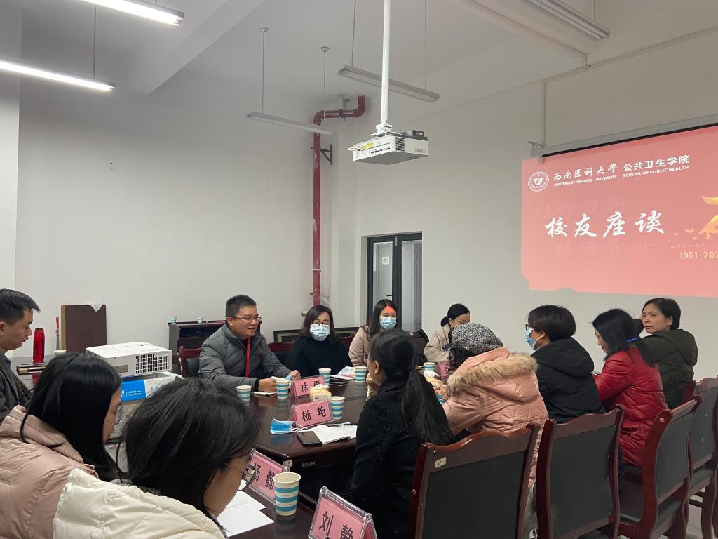 适逢kaiyun官方网站入口建校70周年,公共卫生学院部分实践教学基地受邀来校参加庆祝大会,为进一步增进与校友的紧密联系、团结凝聚基地校友、引导校友关心学院发展,11月26日下午,公共卫生学院校友座谈会在仁济楼320会议室举行。学院副院长汤艳,内江市疾病预防控制中心副主任徐勇、办公室副主任于雪岚、主管医师刘春以及泸州市江阳区疾病预防控制中心副主任刘梦楠出席会议,学院各教研室主任及部分教师代表参加了会议,会议由汤艳主持。