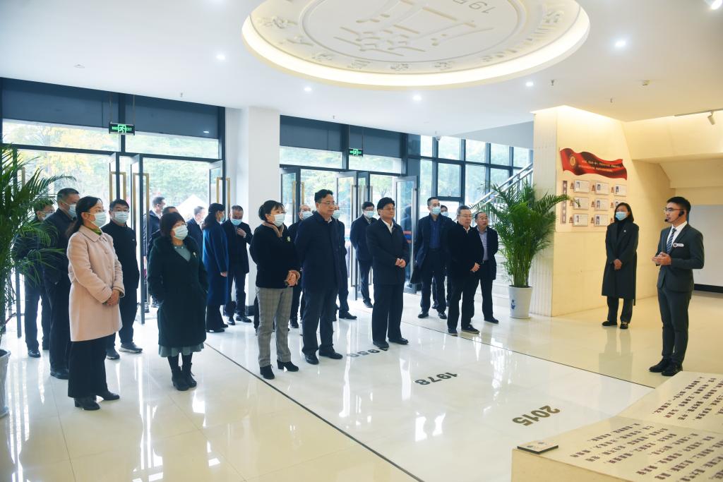 田亚东一行实地参观了学校校史馆,青年体育馆等学校医教园区基础设施EPC+PPP项目,详细了解学校建校70年的发展历史、办学成绩、未来发展,以及市校共建14亿区域医药健康中心支撑性项目总体概况、建设运行情况。