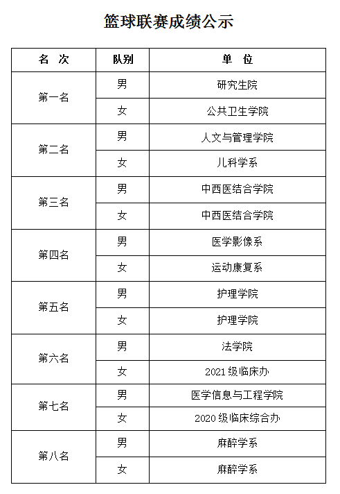 “青体杯”2021年kaiyun官方网站入口校园球类联赛成绩公示
