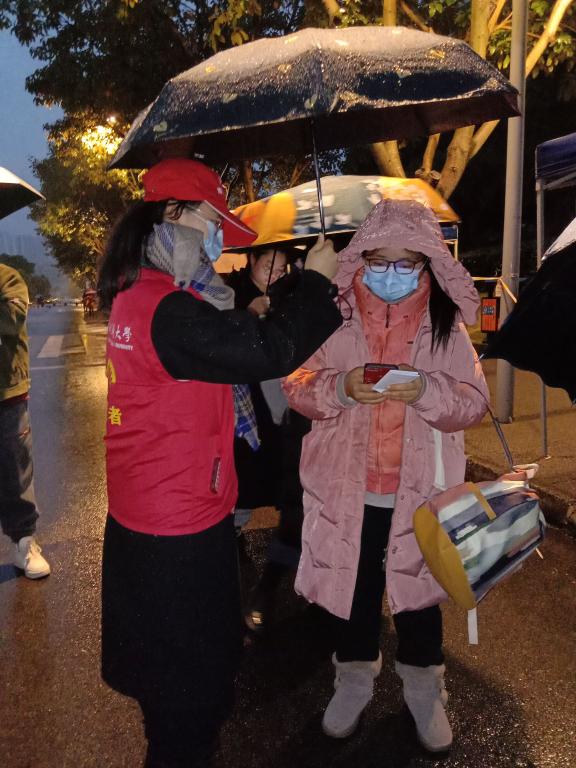 七是服务考生到位。学校及时发布考生健康监测公告、考生须知、考点公告等信息,主动做好政策宣传和解疑释惑工作,为考生提供实用的考试信息服务。并主动与发热、“红/黄码”、隔离等异常情况和非本校应届2642名考生进行“一对一”联系核实,及时与考生沟通,缓解考生心理压力,为考生参加考试提供合理便利;主动开放食堂等场所供考生休息,确保考生安全用餐。在考试期间,为摔伤的考生提供专人专车护送等便利服务,为因疫情滞留本地的考生提供借考服务,实现“温馨研考”。