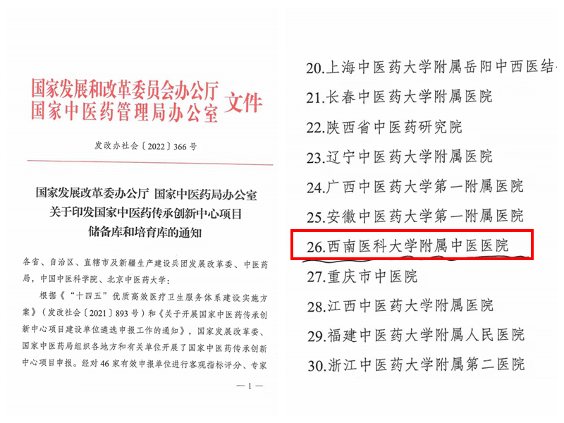 近日,国家发展改革委办公厅和国家中医药管理局办公室联合印发了《国家中医药传承创新中心项目储备库和培育库的通知》,kaiyun官方网站入口附属中医医院上榜,成为全国入选该项目储备库的30个单位之一。