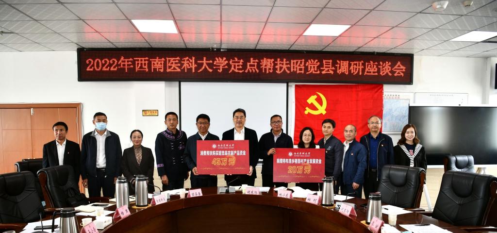 会议还举行了捐赠仪式,廖斌代表学校向特布洛乡格吾村捐赠45万元的消费帮扶资金和20万元的产业发展资金。会后,廖斌一行还走访调研了昭觉县中彝医院、昭觉县妇幼保健中心,对结对帮扶户、村幼儿园学生以及驻村干部进行了集中慰问,并实地考察了中药材种植基地。